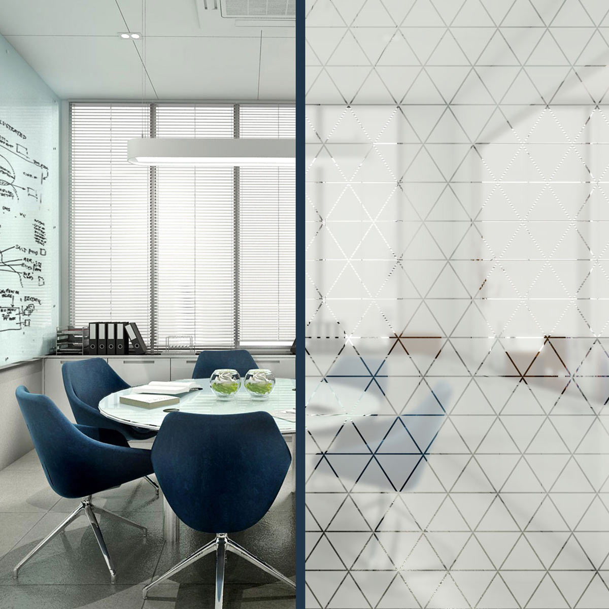 Konturgeschnittene Sandstrahlfolie mit seidenmatter, transparenter Oberfläche für die Verklebung auf Glas – vermittelt den Eindruck einer sandgestrahlten Oberfläche. Wird auch als Glasdekorfolie oder Satinatorfolie bezeichnet.