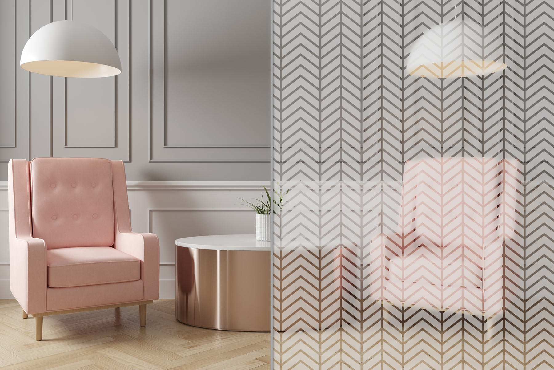 Konturgeschnittene Sandstrahlfolie mit seidenmatter, transparenter Oberfläche für die Verklebung auf Glas – vermittelt den Eindruck einer sandgestrahlten Oberfläche. Wird auch als Glasdekorfolie oder Satinatorfolie bezeichnet.