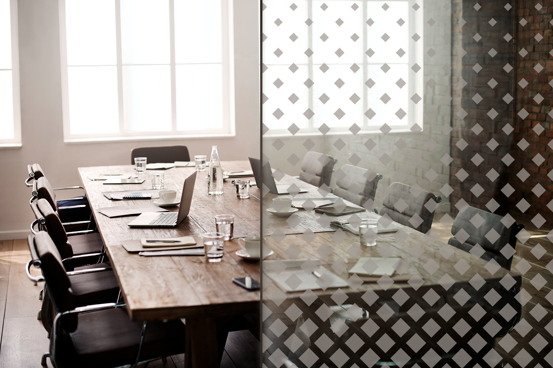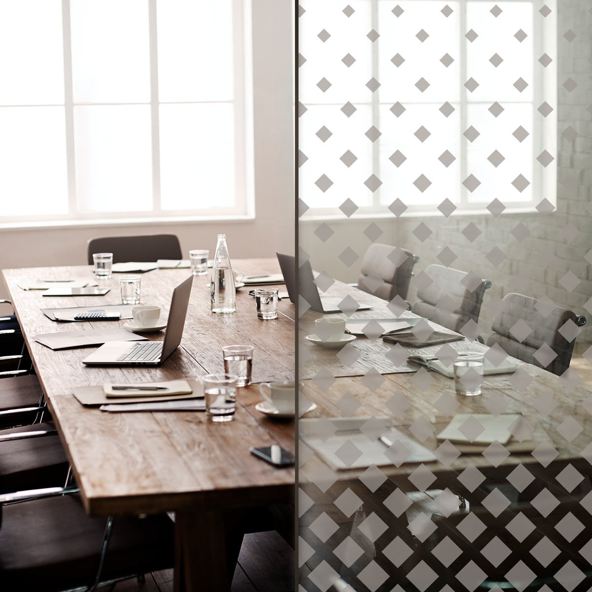 Konturgeschnittene Sandstrahlfolie mit seidenmatter, transparenter Oberfläche für die Verklebung auf Glas – vermittelt den Eindruck einer sandgestrahlten Oberfläche. Wird auch als Glasdekorfolie oder Satinatorfolie bezeichnet.