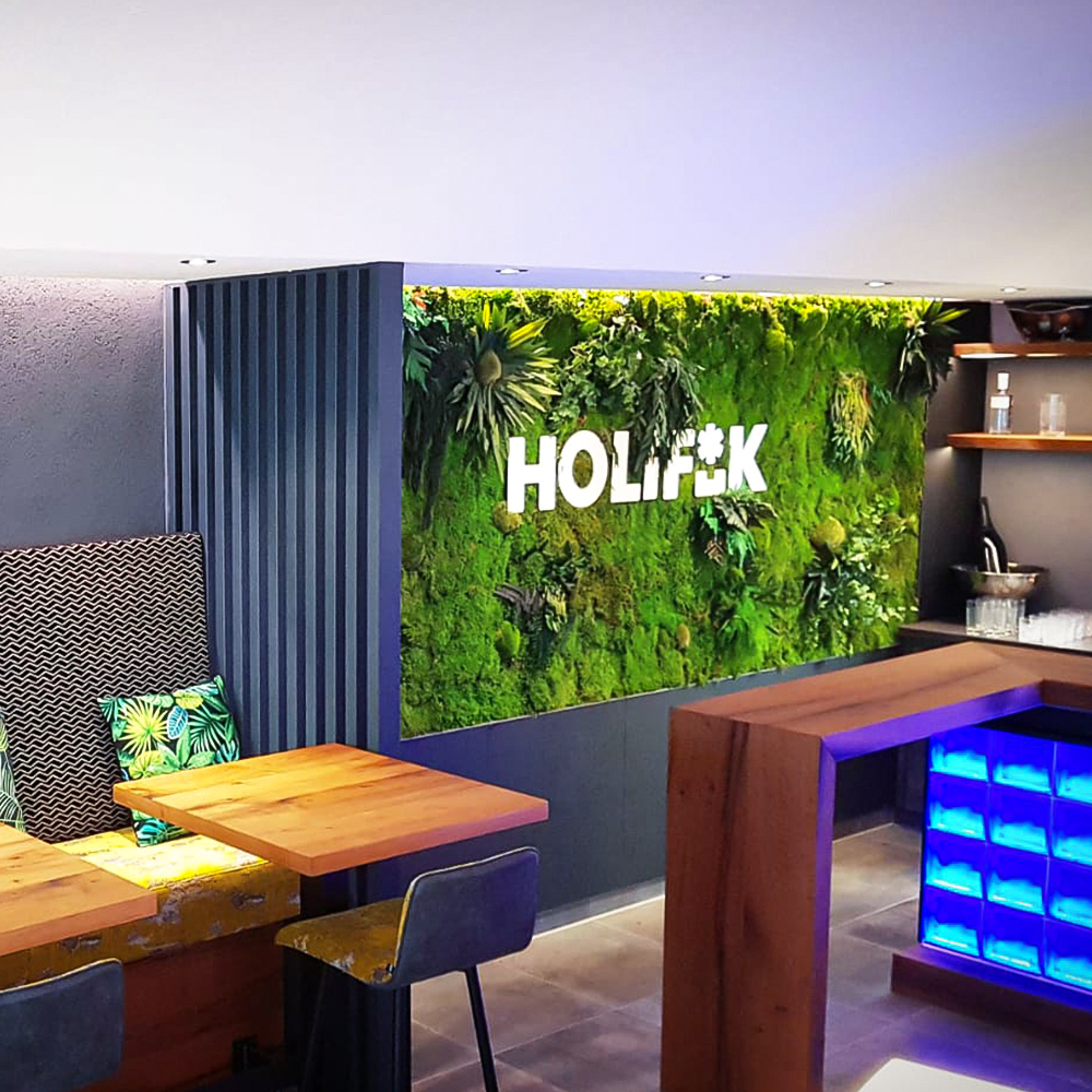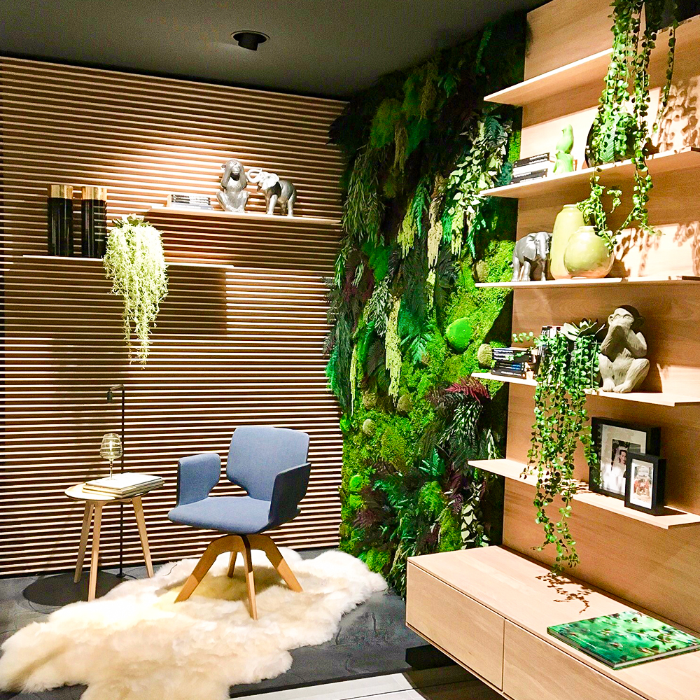 Gestaltungen mit echten natürlichen Materialien in Lebensräumen ermöglichen uns den physischen Kontakt mit der Natur. Laut wissenschaftlichen Studien wirken die natürliche Strahlkraft und Energie des Waldes, die auch dem konservierten Moos und Pflanzen noch innewohnen, positiv auf das Wohlbefinden, stärken die Konzentration und bescheren mehr innere Ruhe. Herzschlag und Blutdruck sinken merkbar und nachweislich. Messbar sind auch die schallabsorbierenden Eigenschaften einer Pflanzenwand, welche zur Optimierung der Raumakustik beitragen.