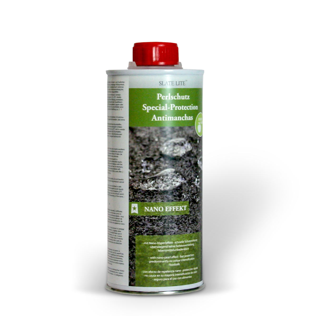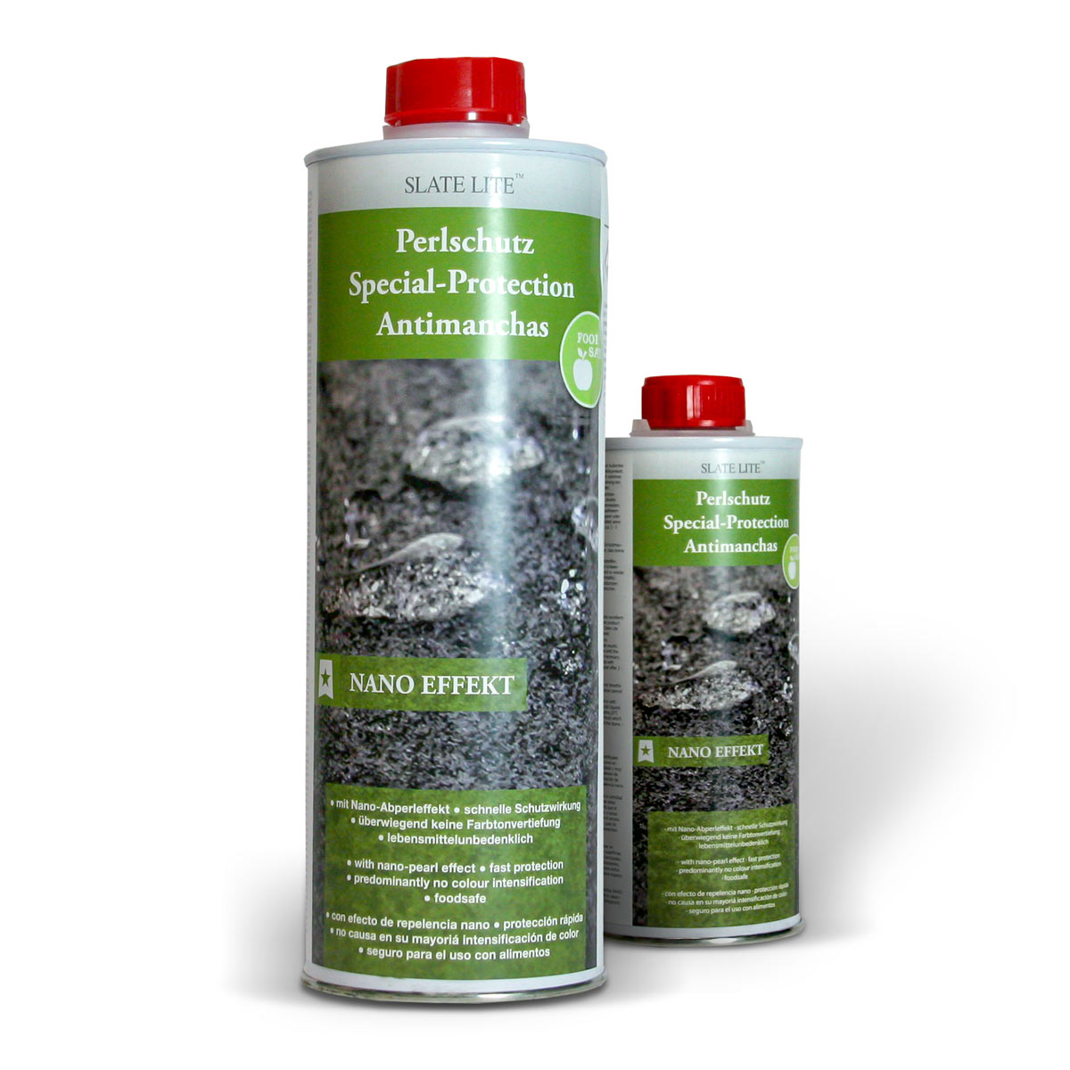 Perlschutz ist eine gebrauchsfertige, witterungsbeständige und vergilbungsfreie Imprägnierung auf Basis organischer Wirkstoffe. Durch die Kapillarkräfte des Steins wird der Perlschutz aufgenommen, ohne die Poren zu verschließen. Daraus resultiert eine hohe Wirksamkeit und Haltbarkeit.
