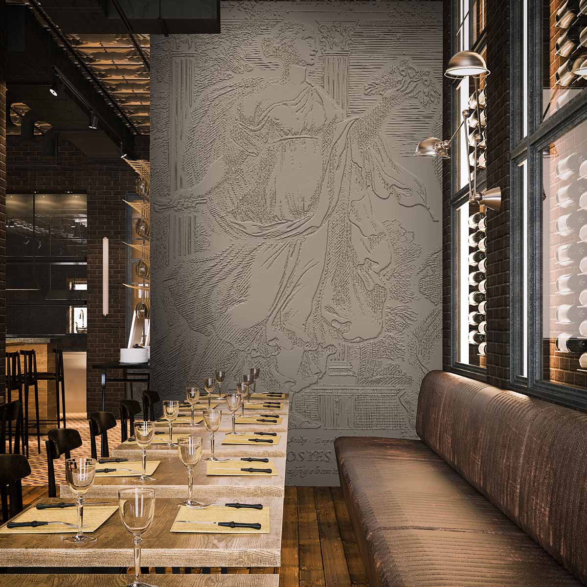 3D-Tapeten können in verschiedenen Umgebungen angewendet werden, z. B. in Büros, Hotels oder privaten Innenräumen. Wenn zusätzliche Beständigkeit erforderlich ist, kann nach dem Aufhängen und Streichen der Tapeten eine zusätzliche Lackschicht aufgetragen werden, wodurch sie vollständig kratz- und abriebfest sind.